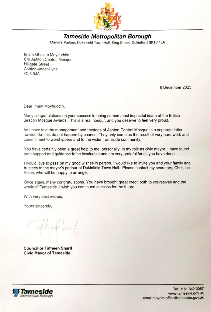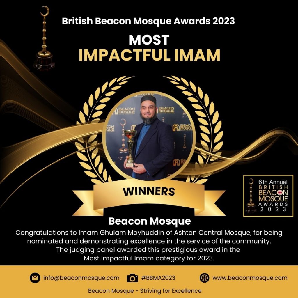 It is an absolute honour and we are proud to announce that Imam Ghulam Mohyuddin won the ‘Most Impactful Imam’ award and Ashton Central Mosque won ‘The Best Run Mosque 2023 ‘