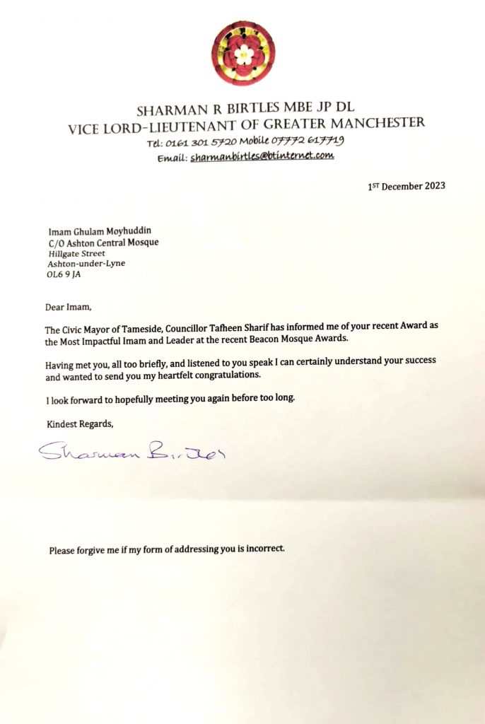 “Imam Ghulam Mohyuddin of Ashton Central Mosque is a highly dedicated and impactful religious leader who has made significant contributions to his community in various capacities. He plays a pivotal role in the mosque’s madrasah, where he has developed and implemented an islamic education system”