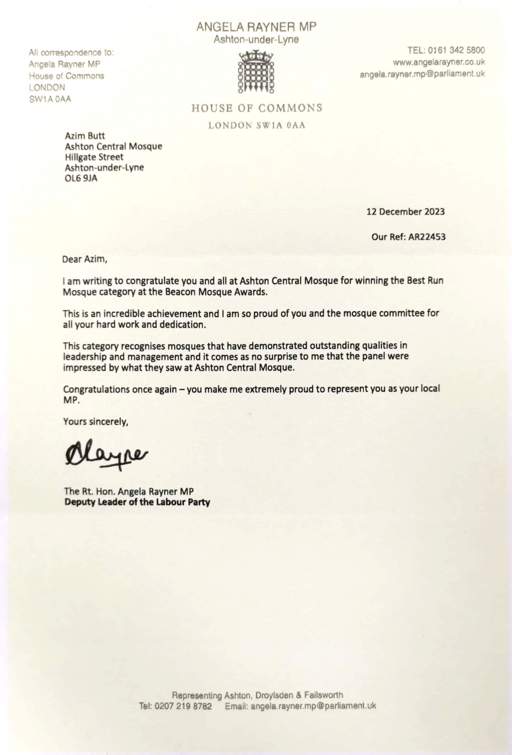 “Ashton Central Mosque is a a shining example of community engagement and positive change. They have orchestrated a multitude of impactful community projects and campaigns, all orchestrated by their dedicated management team in collaboration with the local community”