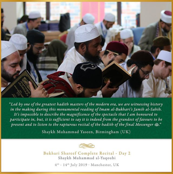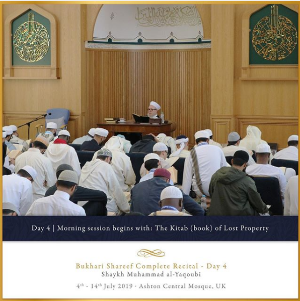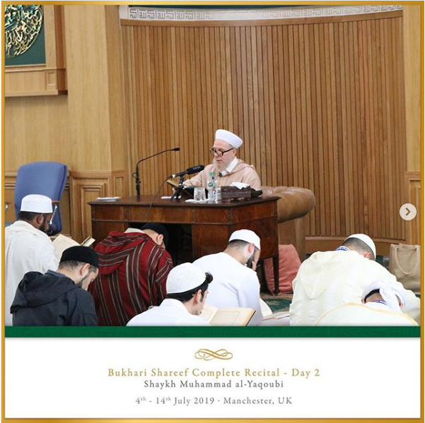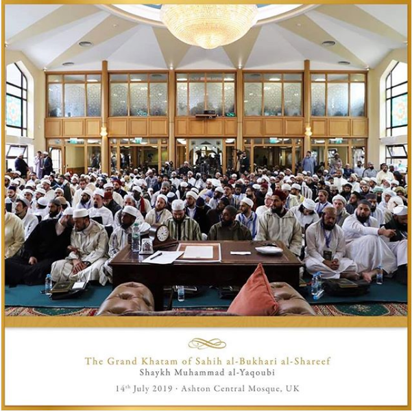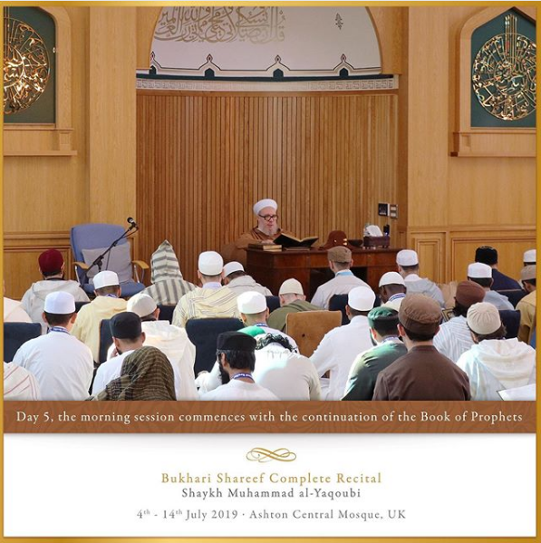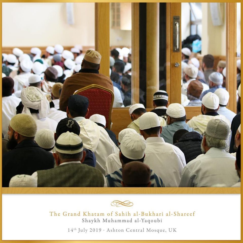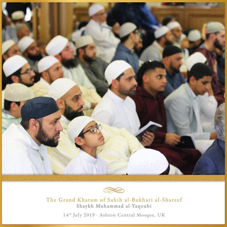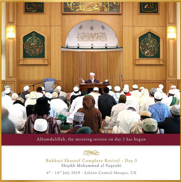 The Ashton Central Mosque had the honour of hosting the full recital of Sahih al-Bukhari in July 2019. Led by the Muhaddith, Alim, Shaykh, Sayyid Muhammad al-Yaqoubi alongside Shaykh Faisal Hamid Abdul Razzaq (Canada) and Shaykh Dr Gibril Fuoad Haddad (Brunei). Students from across the UK and globe attended in waves to participate in this rare landmark and prestigious event of reviving the traditional methods of reciting, teaching, preserving and transmitting the correct and most authentic version of Sahih al-Bukhari.