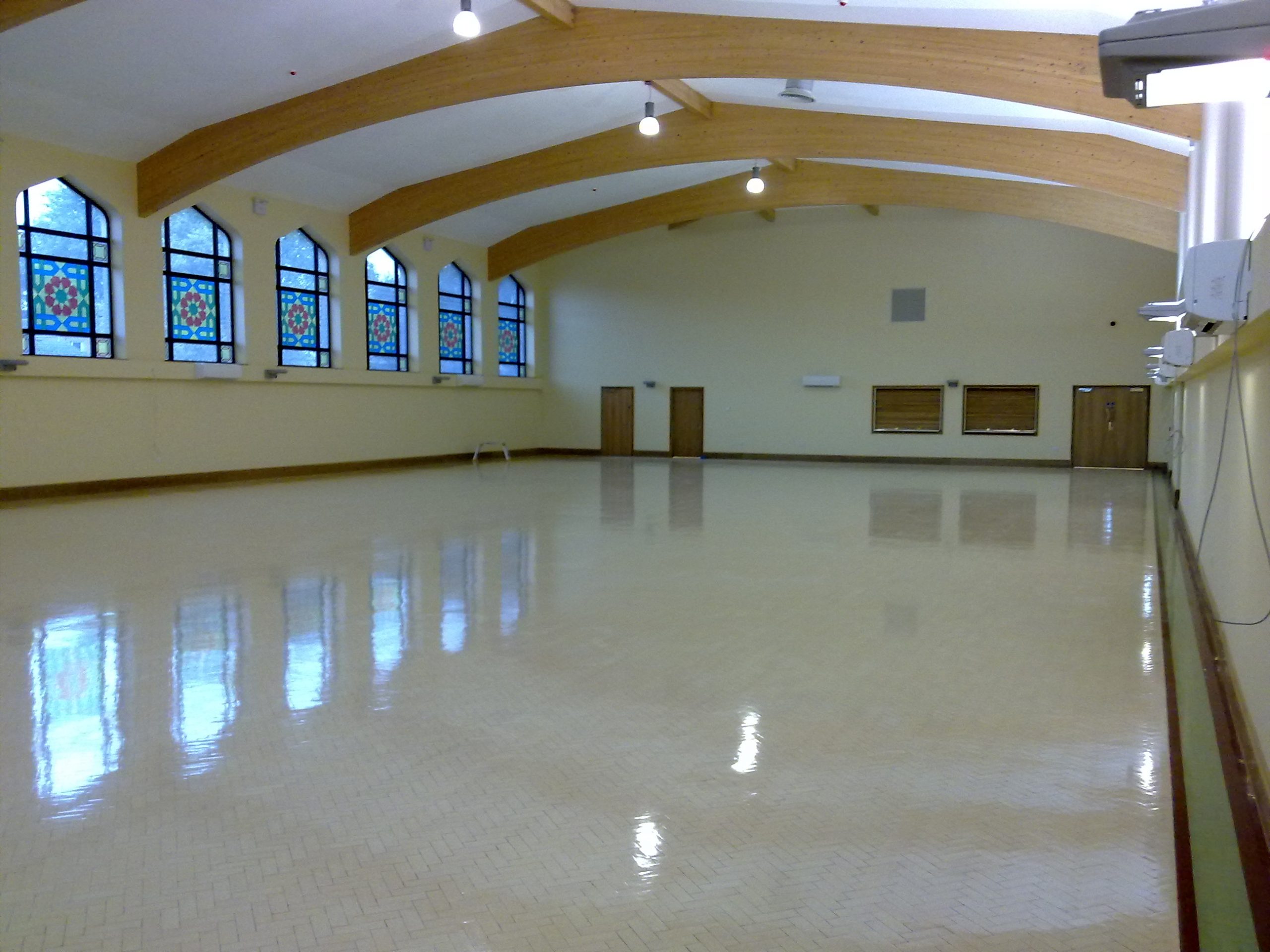 The Ashton Central Mosque has a dedicated community centre which boasts 3 projector screens of 25ft, a stage and round tables.